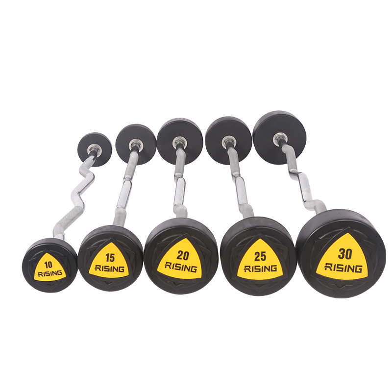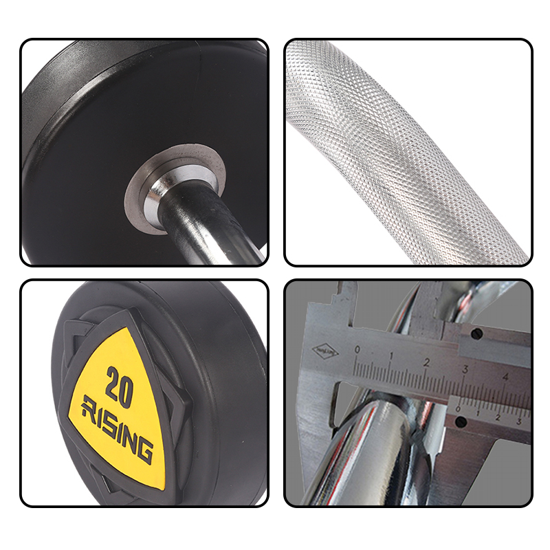 מקלות קבועות נוצרו במיוחד עבור סביבה מסחרת עם תדירות גבוהה של שימוש בגימנסיות מסחריות. הן עשויות מ-PU (פוליאורתאן), שמחובר ישירות לראשים שניים כדי ליצור חיבור קבוע שלא מתרשל עם הזמן. ה-PU חזק מאוד ואינו נקרע, נשרט, נצמץ או מת摩; הוא גם מחזיק מעמד היטב בפני טמפרטורות קיצוניות. כל אורך החזית מכוסה בשלושה חלקים של כורכובים התואמים את כף היד, מה שמאפשר אחיזה ללא ślיפת ובלא פגיעה בידים; מקלות ישרות ומקולות עקומים עונים על צרכי האימונים שלך. המספרים של המשקלים עשויים מברזל טהור, והאותיות השחורות הגדולות (משקל ותווית המותג) על רקע צהוב מאפשרות זיהוי קל וגורמות לכל המתחם להיראות מסודר ומסודר. כולל מדף אחסון מתאים.